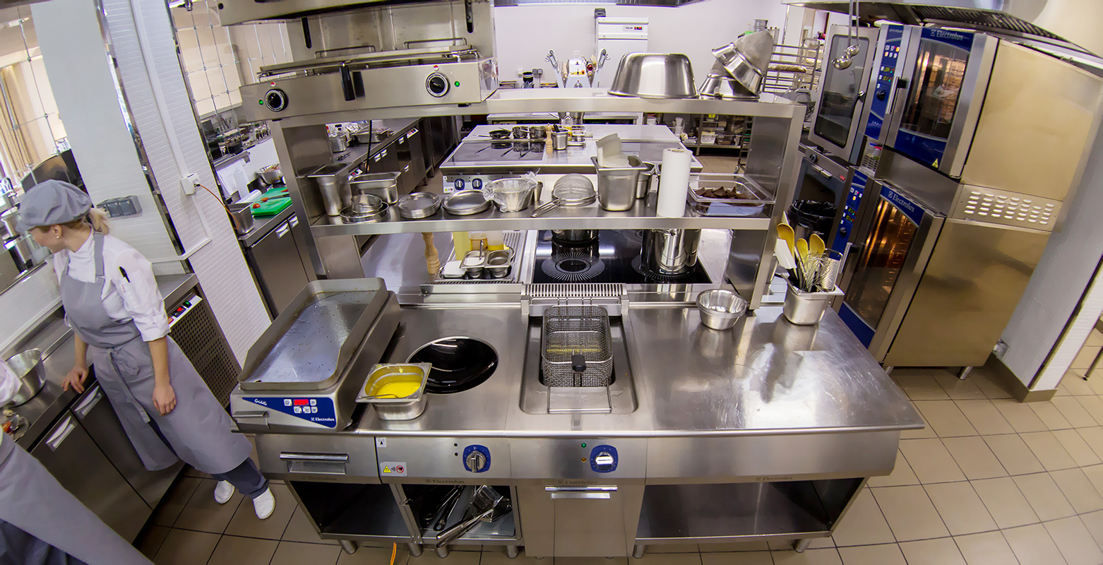 Пространство фабрики-кухни разделено на зоны — общую, цех, санузел. Здесь установлен большой комплекс специализированного оборудования для приготовления качественных продуктов питания, в составе которого: