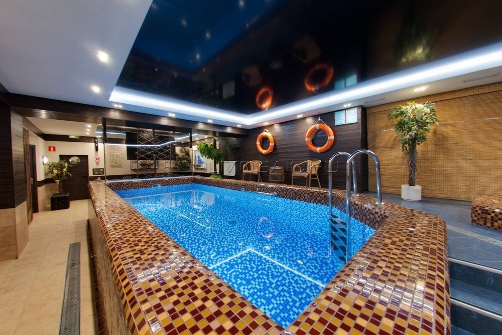 Есть ресепшн, общая зона, санузел, две раздевалки, гостиничная зона с камином и диваном, мокрая зона, бассейн с подогревом, парная и подсобка. Все коммуникации исправны, все необходимое оборудование и мебель прилагается. Все полностью готово к работе.