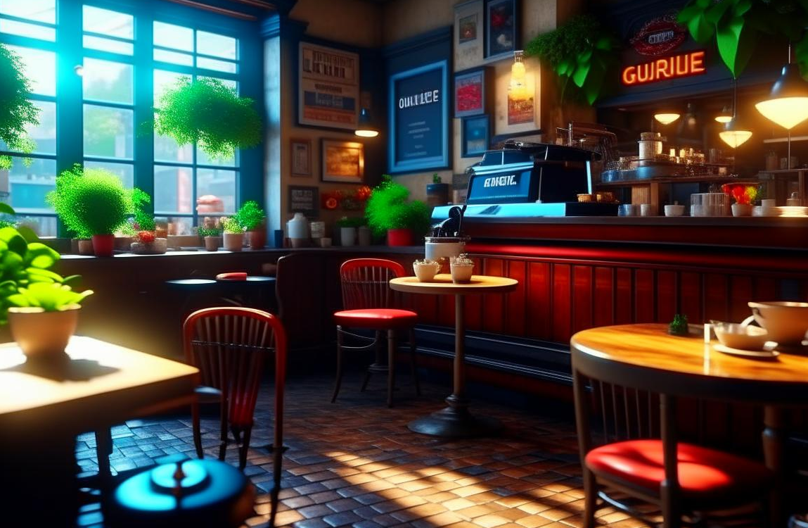В кафе — полный набор оборудования для приготовления блюд и напитков в большом ассортименте, быстрого и качественного обслуживания гостей: