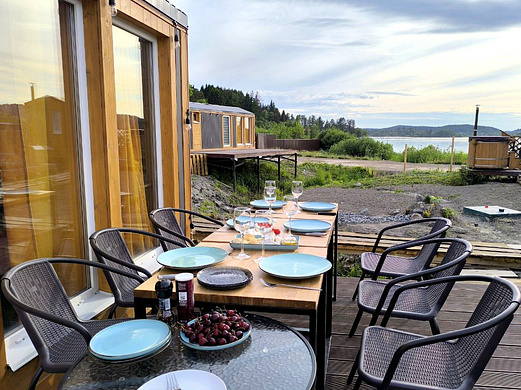 - 5 панорамных домов (15 м² + терраса 21 м²) с потрясающим видом на Ладогу.