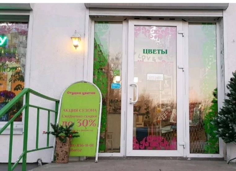 Цветочный магазин в 10 минутах от метро Улица Дыбенко, 1 линия оживлённого проспекта, в самом сердце жилого массива. Магазин работает не первый год, наработана большая база постоянных клиентов, магазин знают в районе.