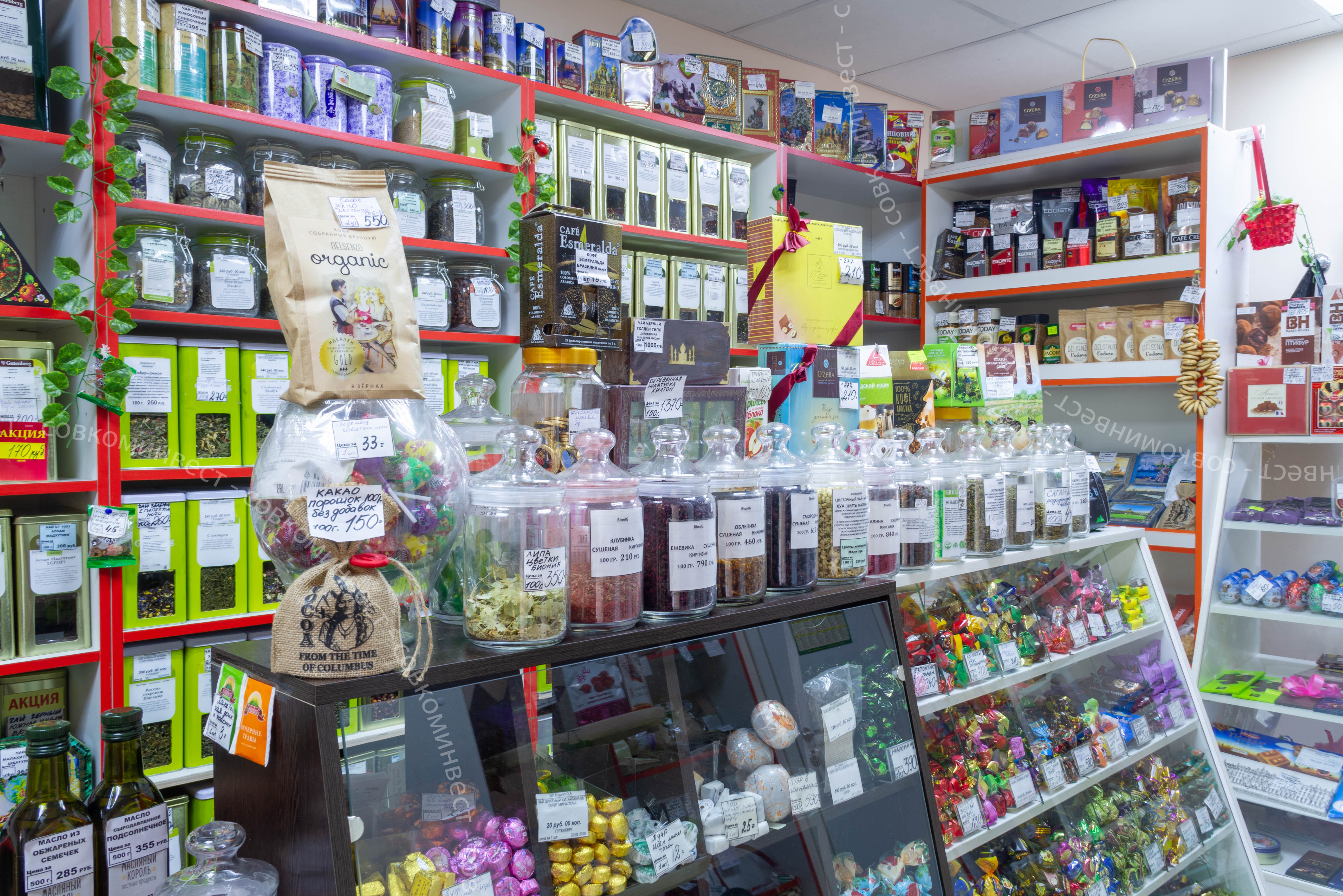 В вашу собственность перейдёт крупный товарный остаток и полноценное материальное оснащение (новейшее оборудование): промышленная итальянская кофемолка, микроволновая печь, холодильник со стеклянной дверью, конфетные витрины (3 шт.), стеллажи, бегущая строка (стрит-реклама), весы, подарочные упаковки. Также есть online-касса и эквайринг.