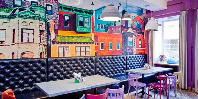 Интерьер заведения выполнен в оригинальном авторском стиле, что, в свою очередь, придает кафе дополнительную узнаваемость и ускорение «сарафанного радио».
