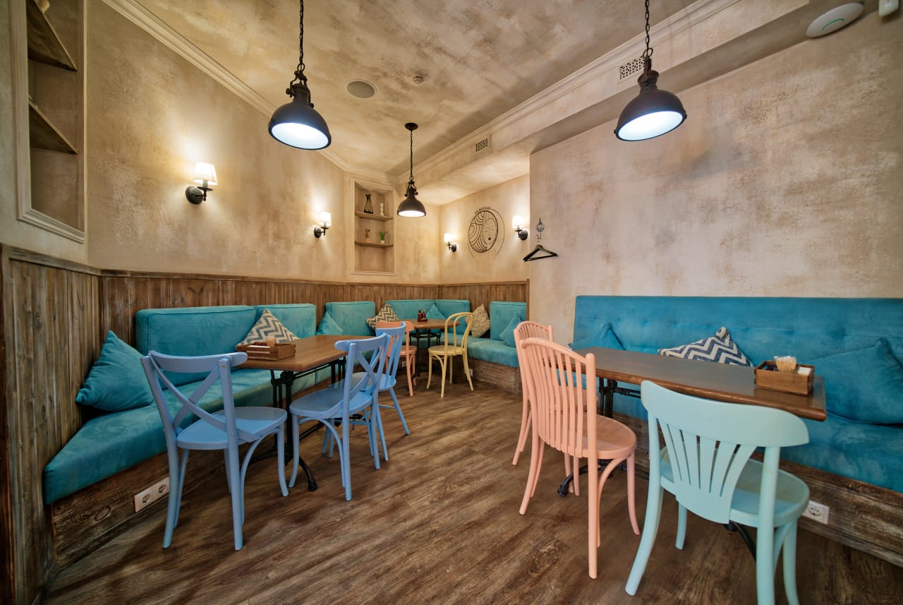 Функционально помещение разделено на кухню, барную зону и гостевой зал, рассчитанный на 50 посадочных мест. Внутри ресторана сделан хороший качественный ремонт. Дизайн ресторана располагает к приятному времяпрепровождения, подходит как и для деловых встреч, так и для семейных ужинов.