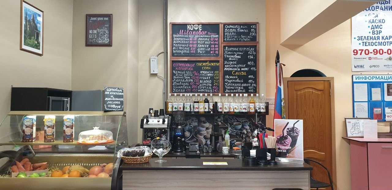 Ассортимент продукции: итальянский кофе, свежевыжатые соки, смузи, молочные коктели, закуски и выпечка.