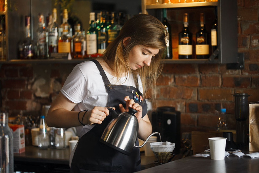 В штате трудятся 5 человек: 2 бариста (один из низ старший и занимается в том числе закупкой), 2 помощника бариста и SMM-менеджер.