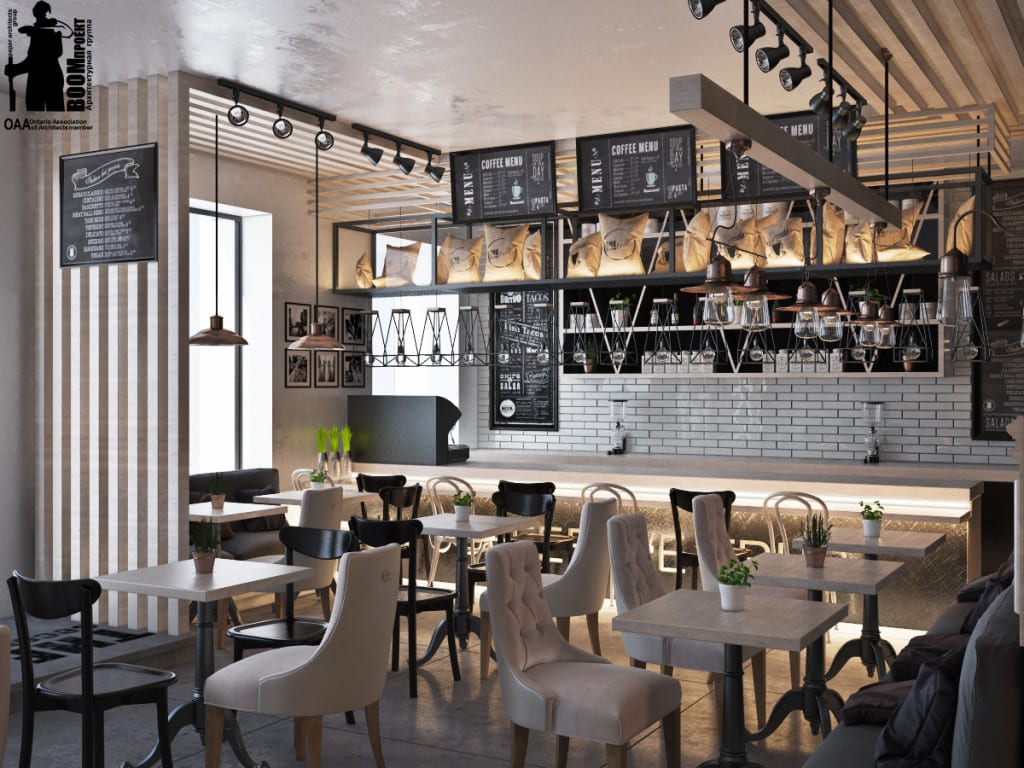 Заведение находится на первом этаже, в отдельно стоящем здании. Вход с первой линии, большие окна на три стороны, 3 ярких вывески привлекающие внимание прохожих. Помещение разделено на зоны: общий зал, сан. узел, подсобная зона. В кофейне предусмотрены посадочные места на 8 персон.